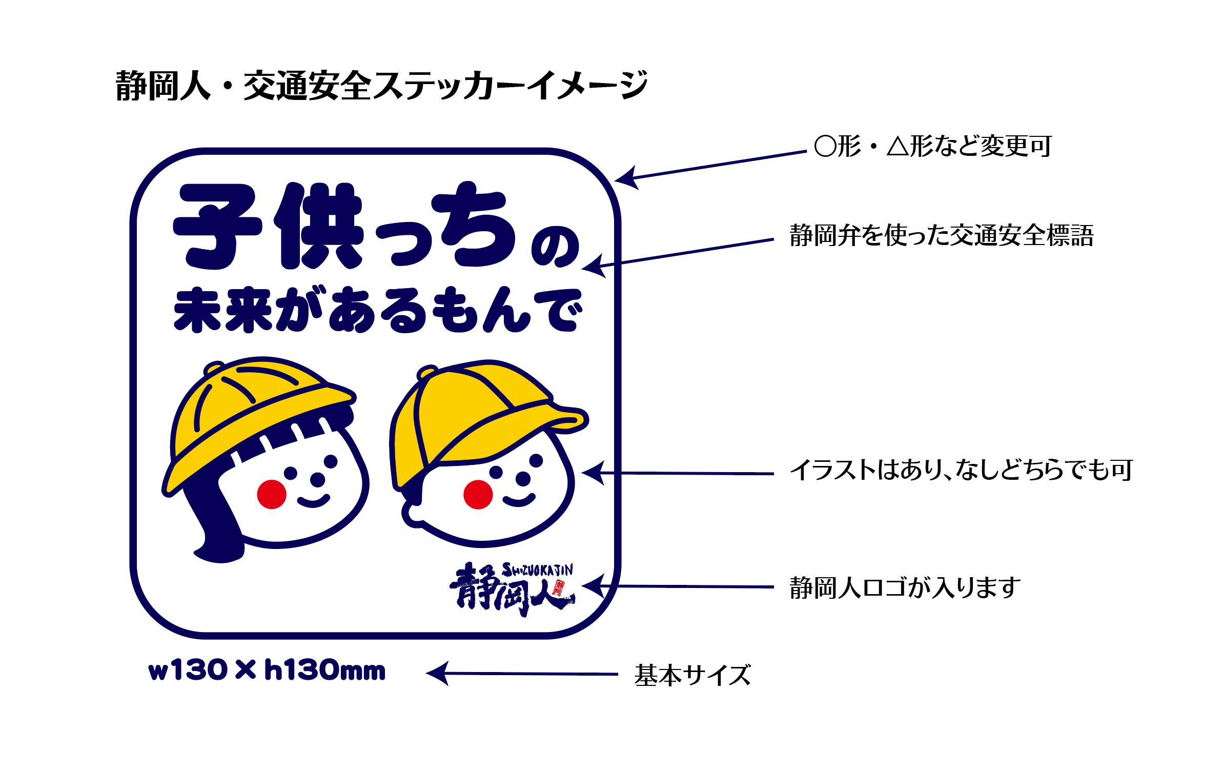 いくつかのグッズを製作しますが、その中で、10,000枚の屋外用ステッカーを製作し、静岡人皆で車をはじめとした至る所に貼って、交通安全を促すキャンペーンを実施します。