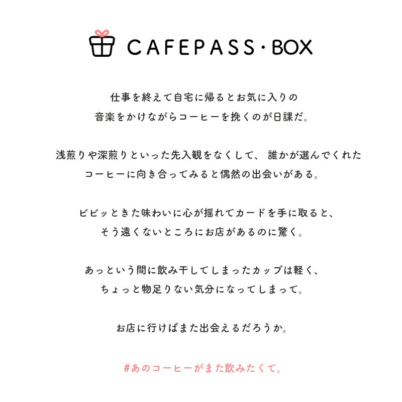 お気に入りの豆を見つけた人が同じ豆を求めてお店を訪ねてくれるようになることが、CAFE PASS BOXが目指す世界です。