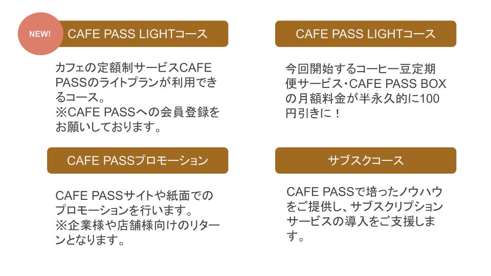 今までのリターンに加え、カフェの定額制サービスCAFE PASSがリターンに加わりました!今回は提携カフェのコーヒーを月に3杯お楽しみいただけるライトプランをご用意いたしました!
