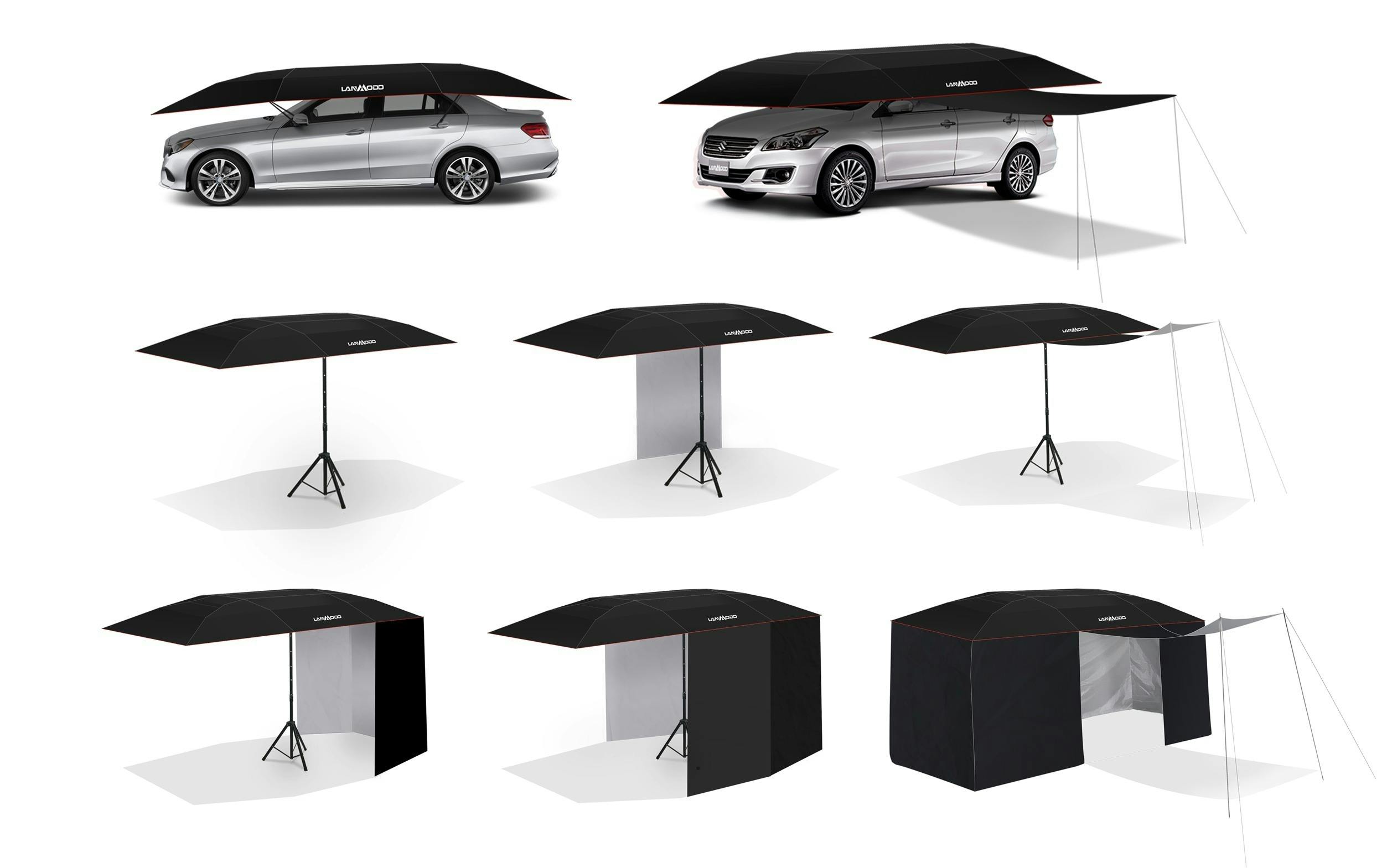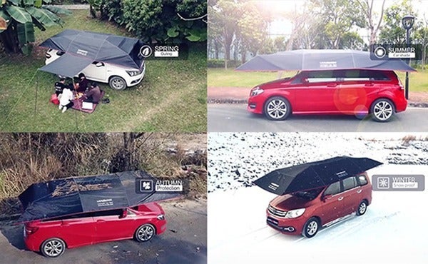などの天候や車の汚れの悩みを解決する、新しいポータブルテントです。