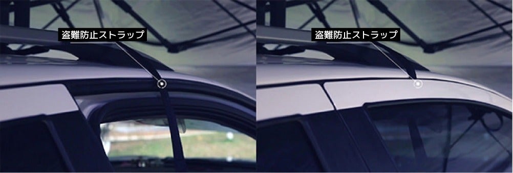 Lanmodoテントには盗難防止ストラップがついており、車に設置する際にドアに挟みこみます。