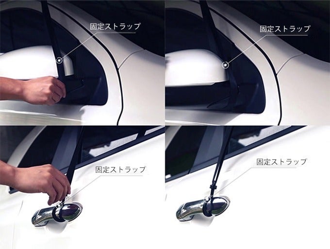4.ドアミラーとハンドルに固定ストラップを引っ掛けます。