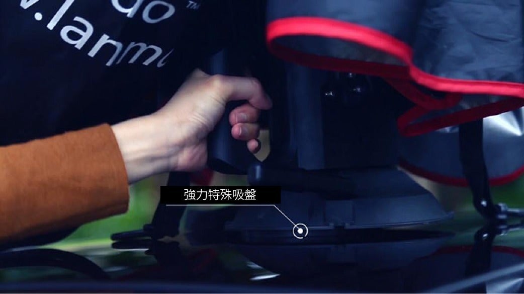 1.Lanmodo PRO本体についている特殊吸盤を車の天井に取り付けます。