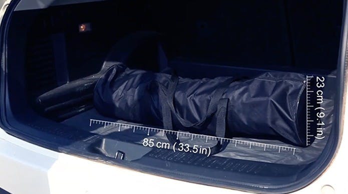 畳むことで85cm×23cmまで縮小でき、車のトランクに収納しておくこともできます。
