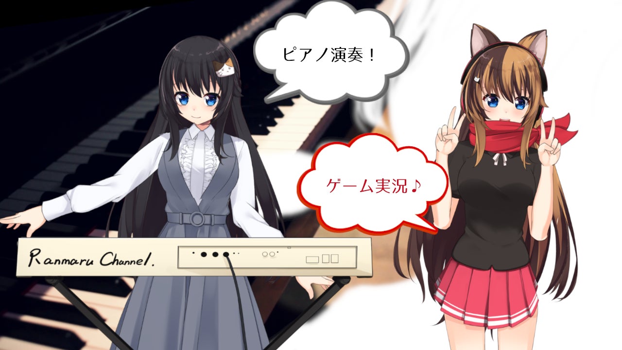 「ゲーム実況は猫耳サムライガールモード」、「ピアノ演奏は黒髪らんまるちゃんモード」でそれぞれ活動しています。