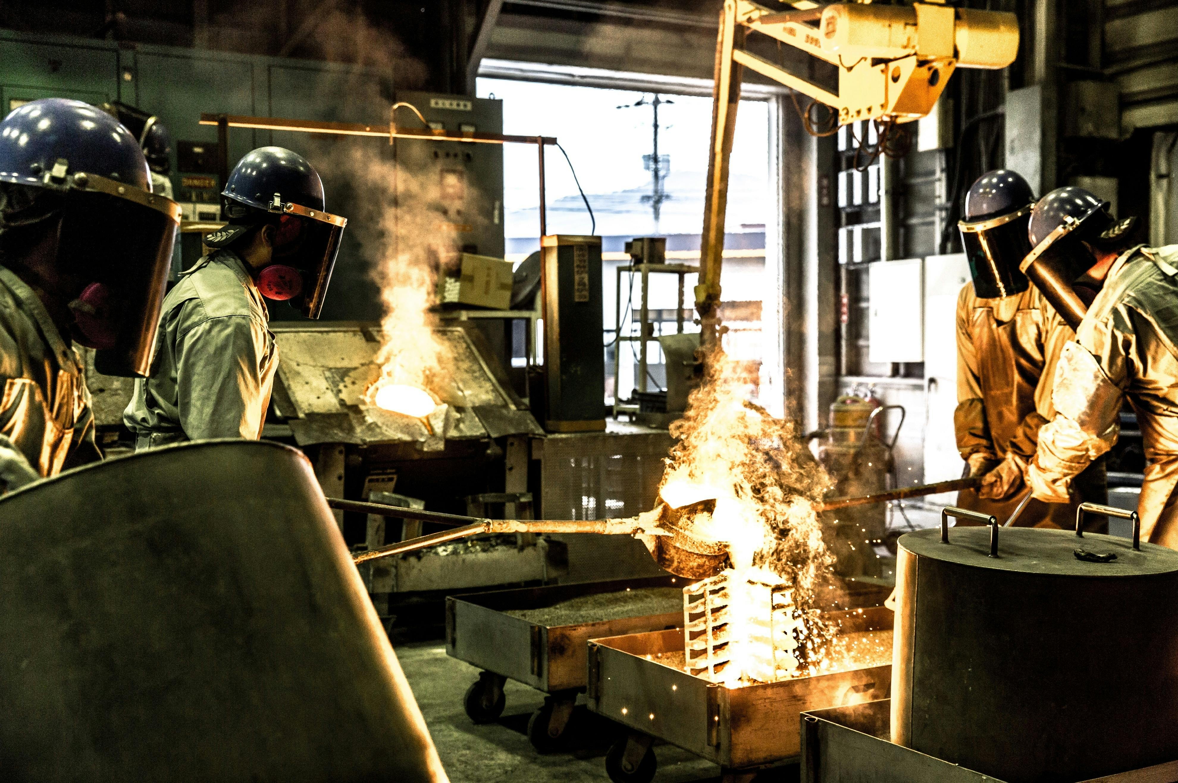 鋳造の熱気が伝わってくる写真ですね!