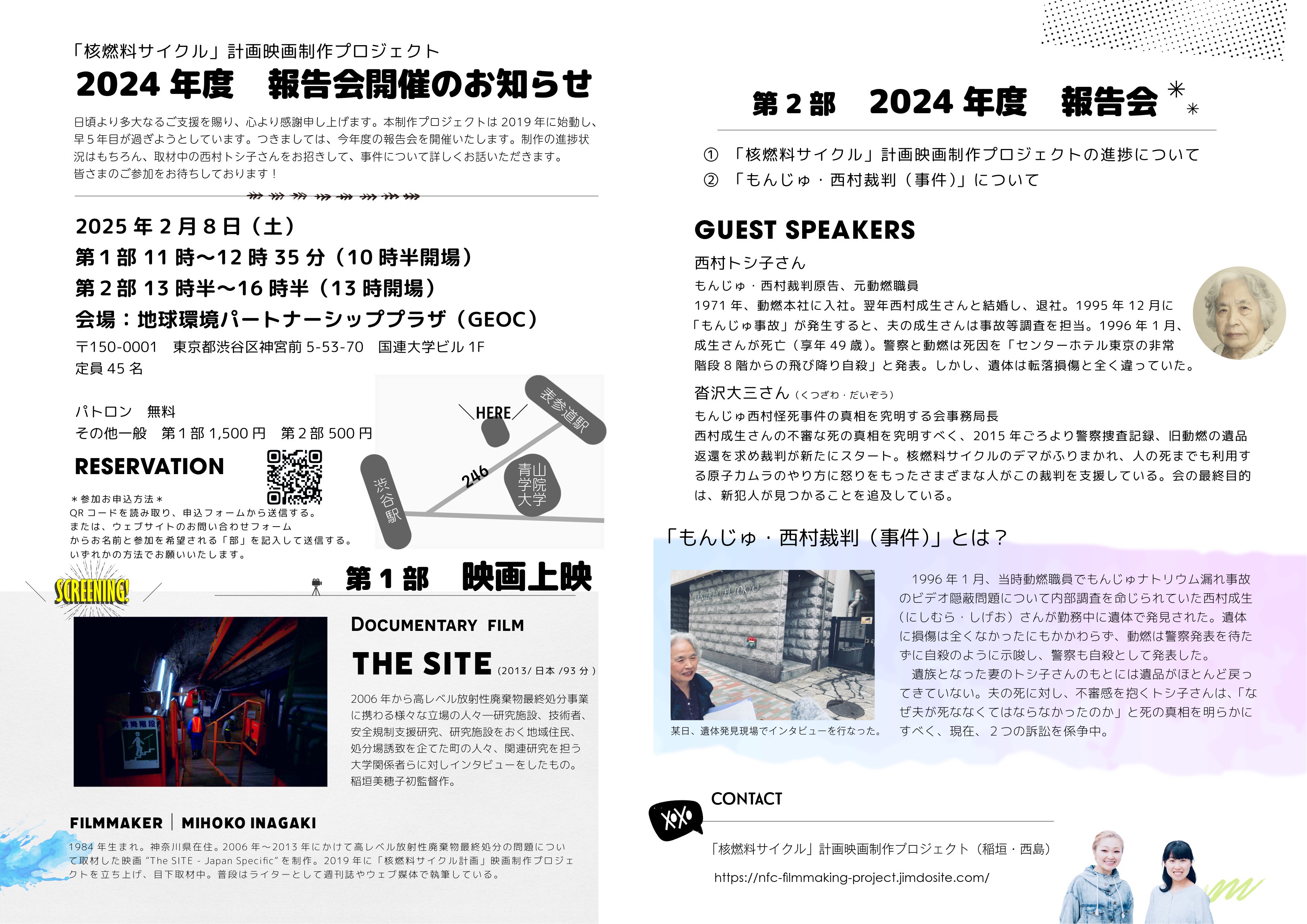2019年から始動した本プロジェクトも早5年目を迎えました。この度は、クラウドファンディングでご支援下さった皆さまをはじめ、広く、本プロジェクトの経過をご報告するとともに、現在取材中の西村トシ子さんをお招きし、「もんじゅ・西村事件」について詳しくお話していただきます。