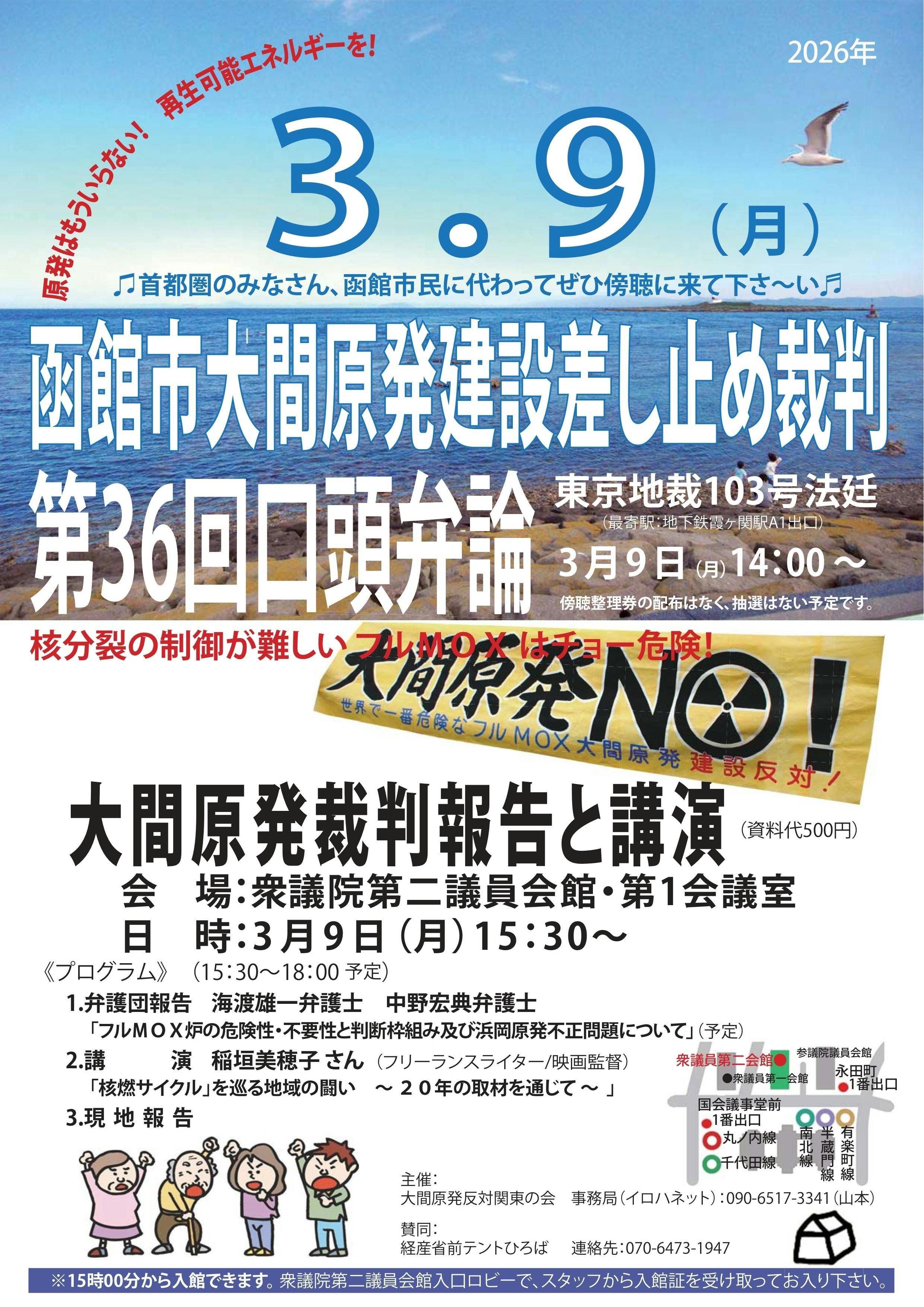 3月9日に開かれる大間原発裁判報告集会&講演にお招きいただきました。