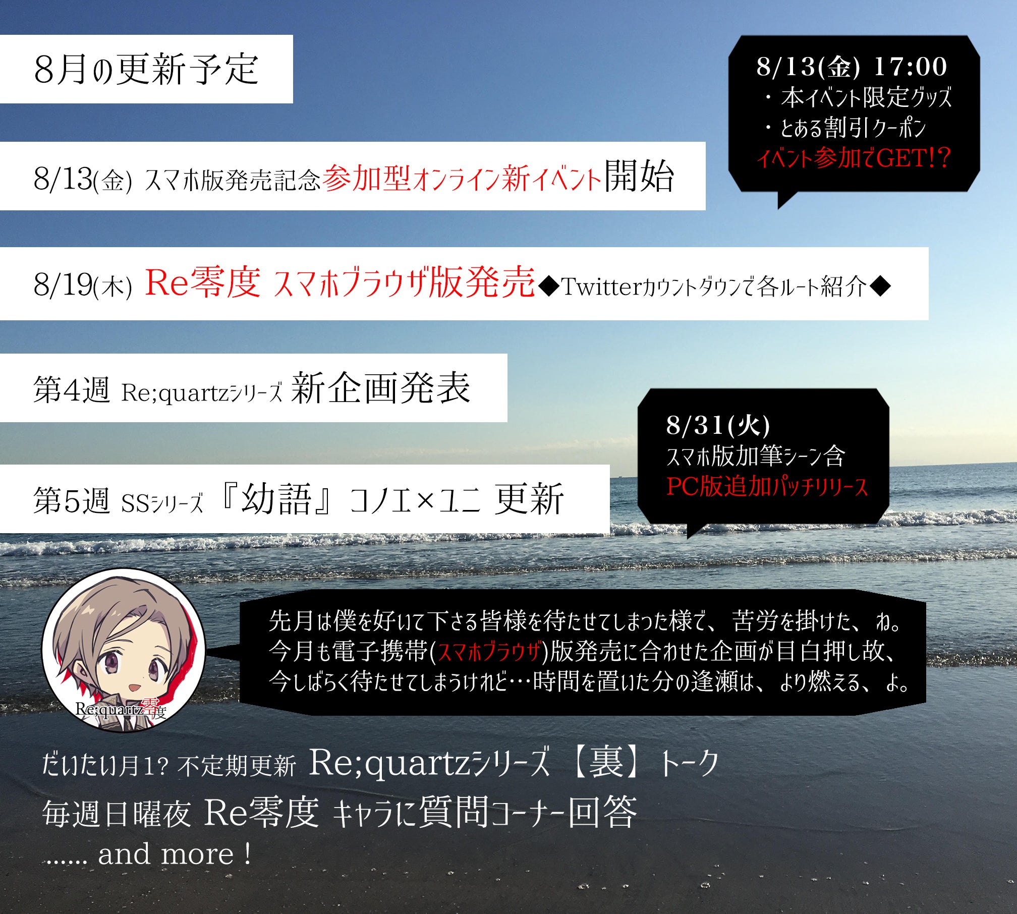 ◆8/19(木):Re;quartz零度 スマホブラウザ版発売◆