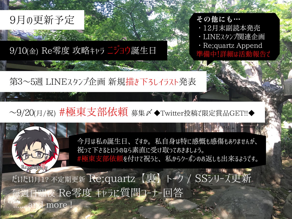 ◆9/20(月・祝):Re;quartz零度 #極東支部依頼 ツイート投稿〆切◆