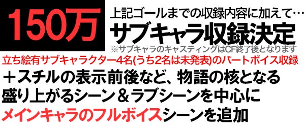 現在の結果を受けまして、音響会社さんとフルボイス化した場合の予算面の打ち合わせをした上で、もし150万円のストレッチゴールを達成した場合は、なるべく早く、フルボイス化までの目標金額を発表出来るようにして参ります。