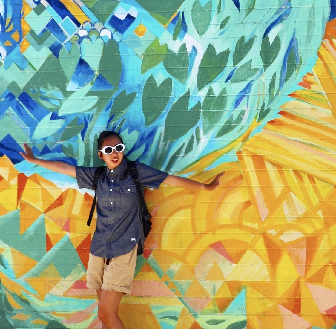 本来は着物や日本ならではの伝統工芸、日本食を持っていきたいですが、制作費が高くなり、提供できる個数も減り、食べ物に関しては持っていくことが難しいと考え、自分のデザインをポップに日本を詰め込みTシャツに印刷したいと考えました。Tシャツは日常着ることもでき、またさらにその服を見て日本って面白そう!と興味を持ってくれる人が増えるのでは?と考えました。