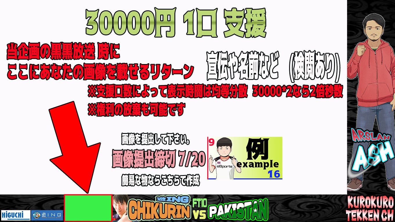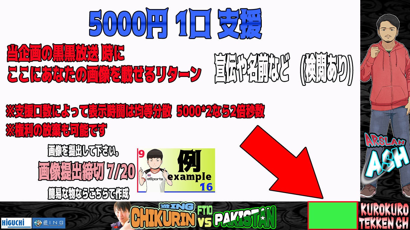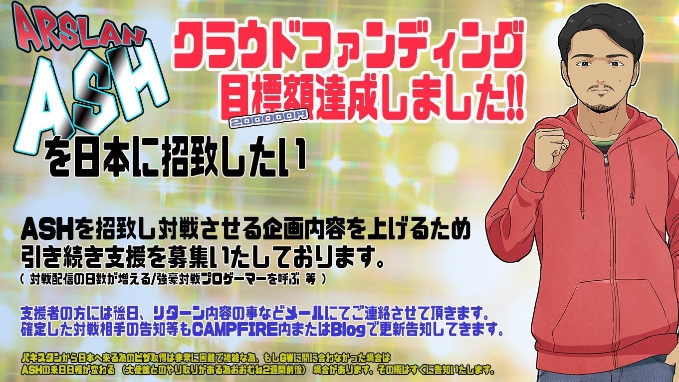 2019年5月に「パキスタン勢Arslan Ash (EVO Japan優勝者)を日本に招待したい」という」クラウドファンディングをこちらCAMPFIREさんで行い実行しています。