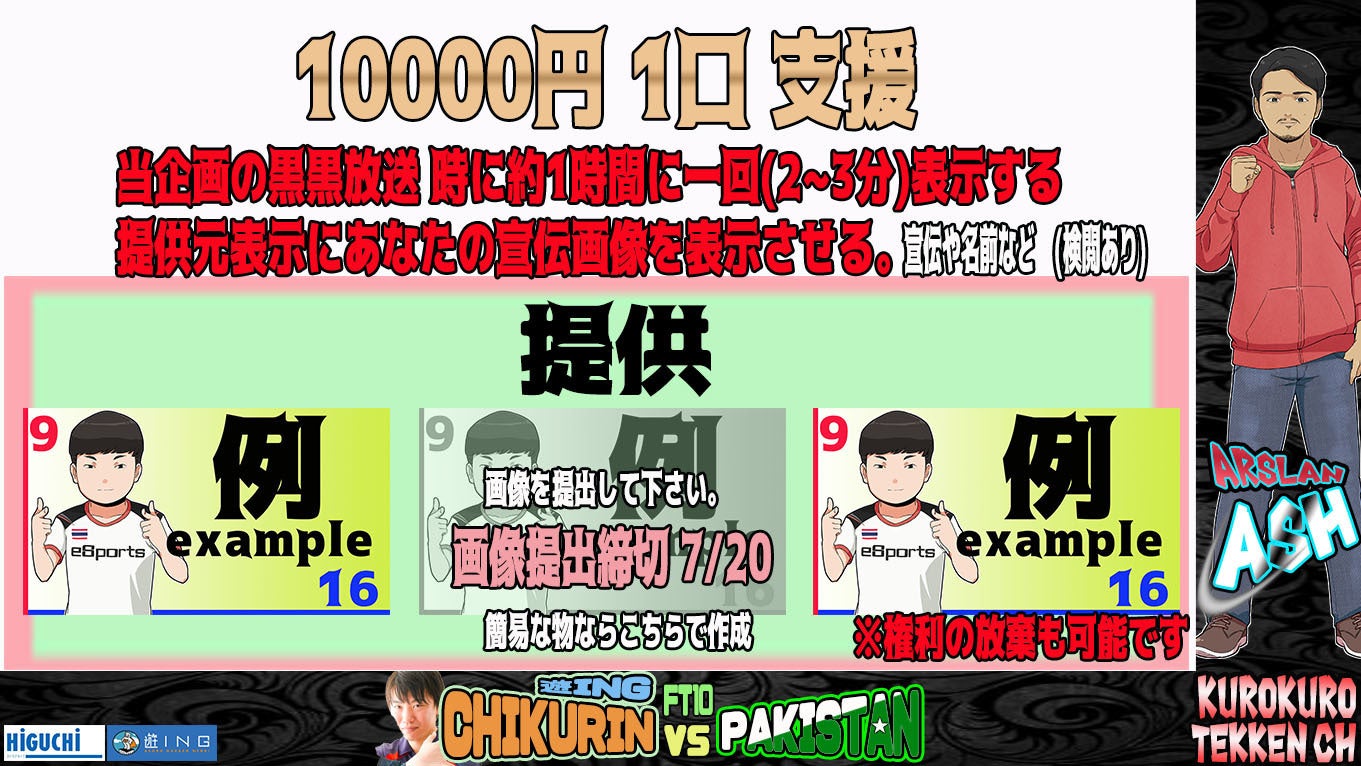 ※今回のパキスタンでチクリンがパキスタン選手と戦う事となった場合や大会が行われる事となった場合は、esports Pakistanが主催者となります。
