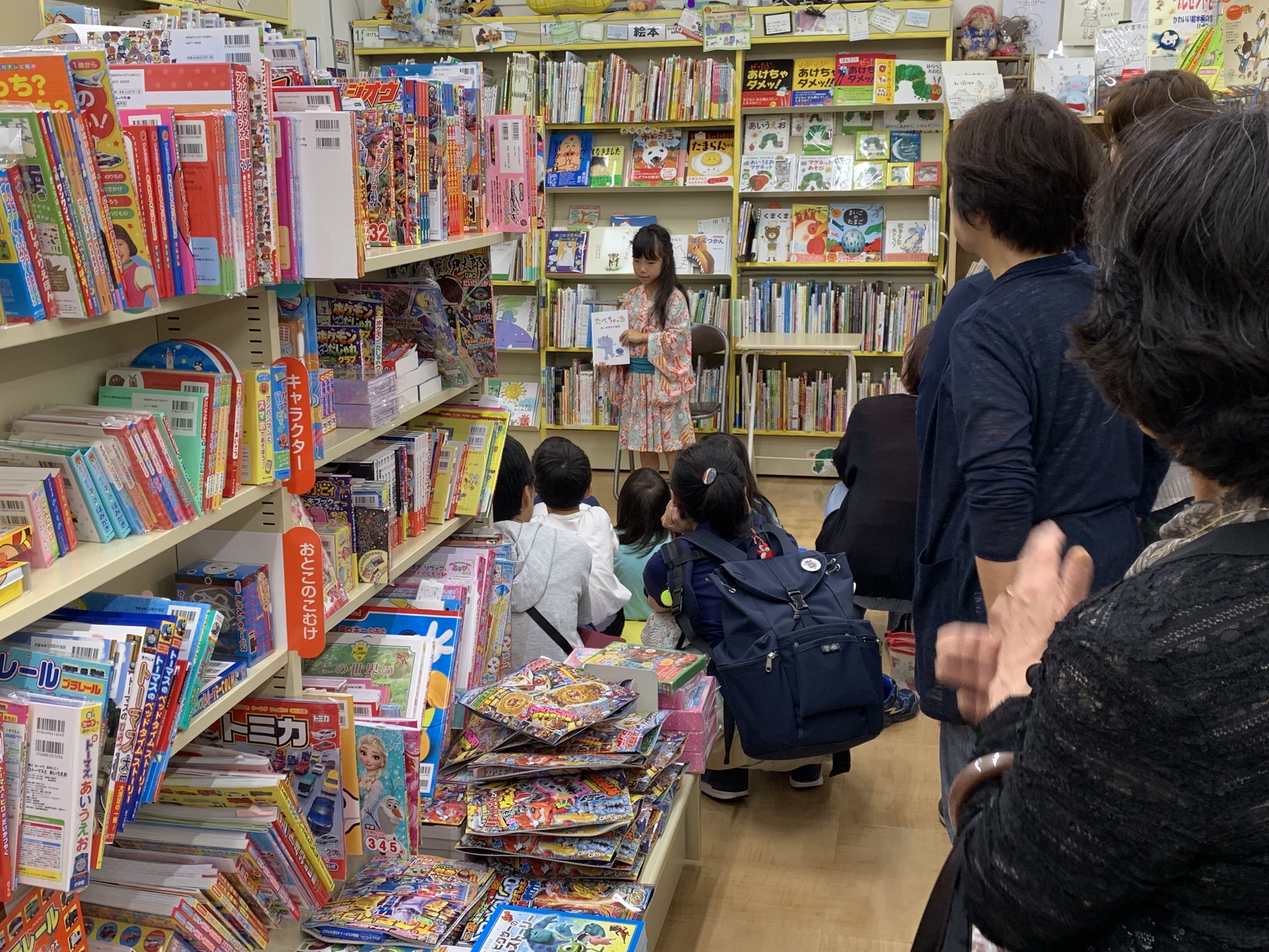 本人の希望により、街の本屋さんで絵本「たべちゃった」を読みました。