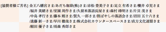 CAMPFIREにて30,000円以上の支援をいただいている協賛者さまと、