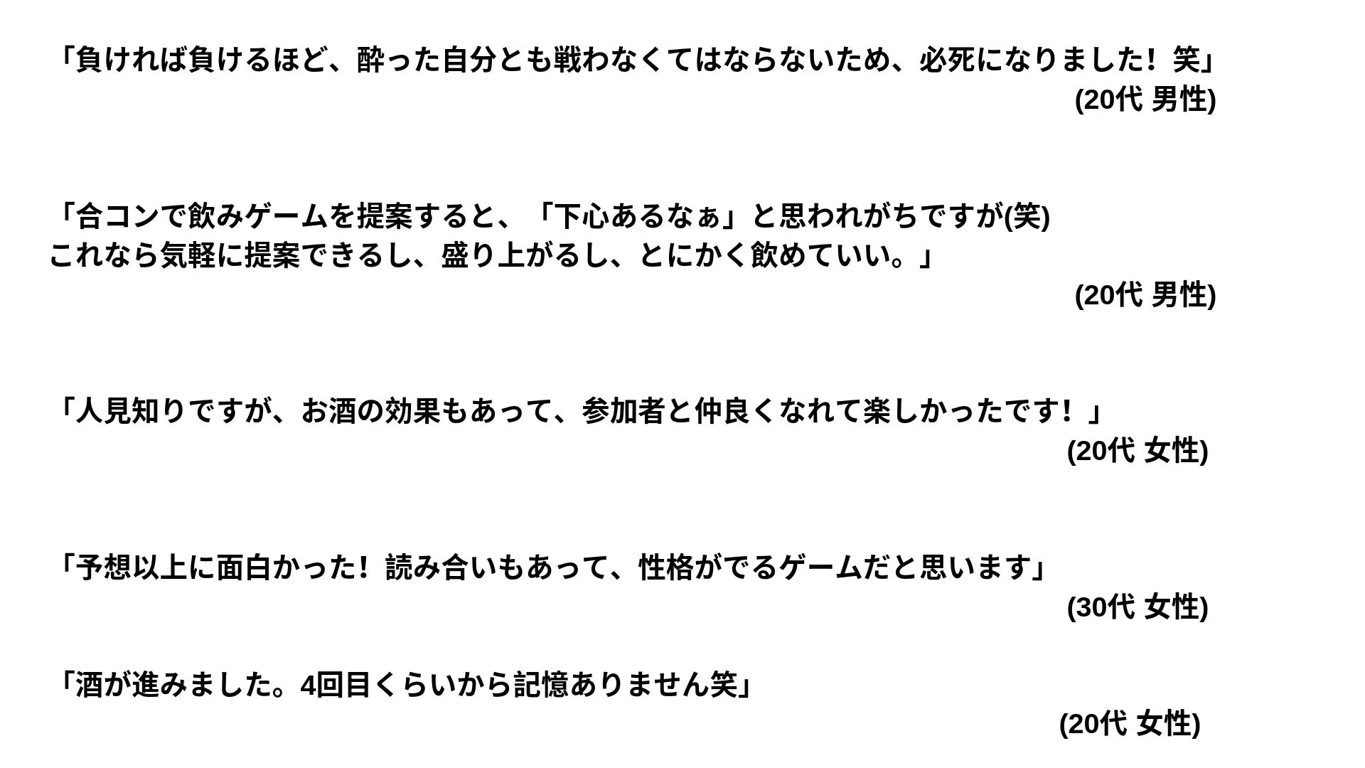 「今まで飲みゲームやったことないけど、これをきっかけにやってみたい!」