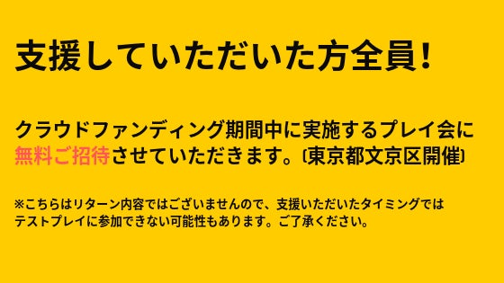 ※こちらはリターン内容ではございませんので、支援いただいたタイミングではテストプレイに参加できない可能性もありますのでご了承ください。