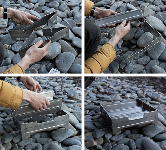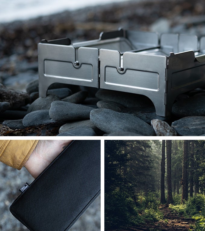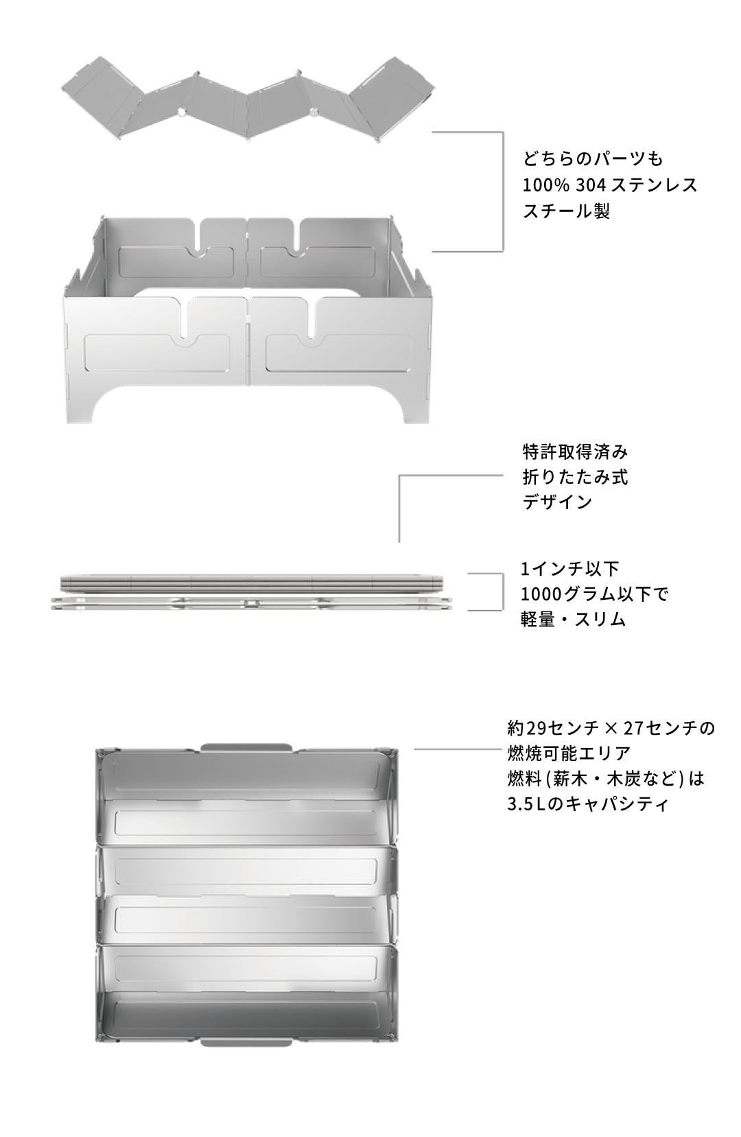 折りたたんで収納できるポーチが付属。コンパクトに持ち運べるので、キャンプファイヤーをもっと簡単に、より身近なものにしてくれます。