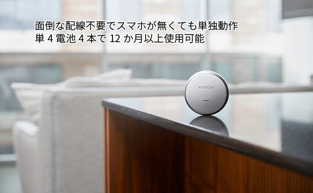 また、省エネにも優れるKnocki は単4電池4本で12ヶ月以上のバッテリ寿命を実現します(使用状況により変化します)。