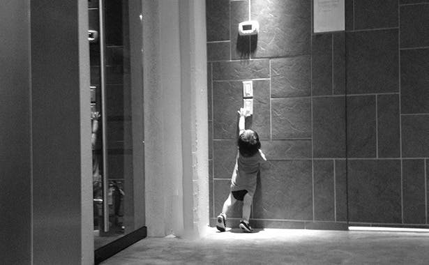 スイッチに手が届かないような背の低いお子様がいる家庭では、壁全体が照明のスイッチになります。お子様が部屋を出る時に壁をノックすればテレビとエアコンをOFFにして照明は自動的に消灯します。