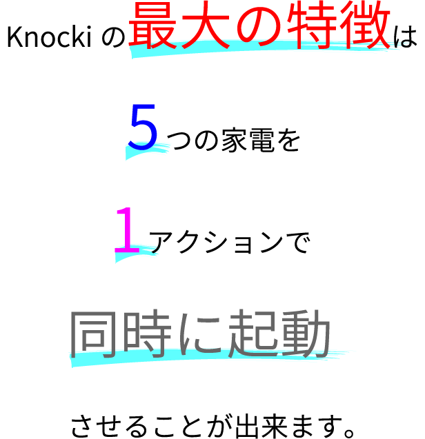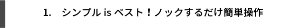 今回ご提案させて頂きます「Knocki」の最大の特徴は、究極のシンプルアクションです。そこにはスマホでの複雑なアプリの操作や、インターネット経由での命令は一切不要です。