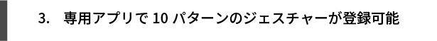 ジェスチャーには、単一のアクション(「照明のON/OFF」・「定型文の自動送信」など)、または一連のアクション(「ドアロック」+「ホームセキュリティのON」+「エアコン設定」など)を登録することができます。