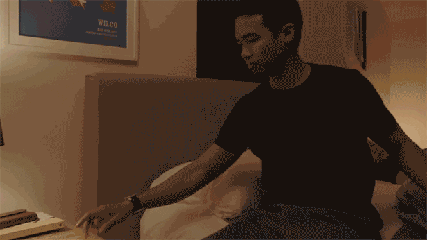 就寝時にはナイトテーブルをノックするだけで寝室のエアコンをONにして空気清浄機も作動させ、照明を落とします。