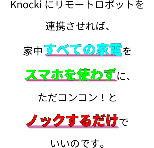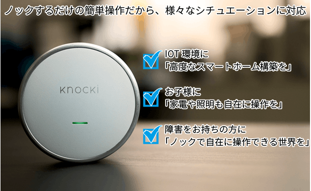ただ「ノックするだけで、自由自在」のシンプル操作は全ての人の生活を豊かにするものと確信しております。