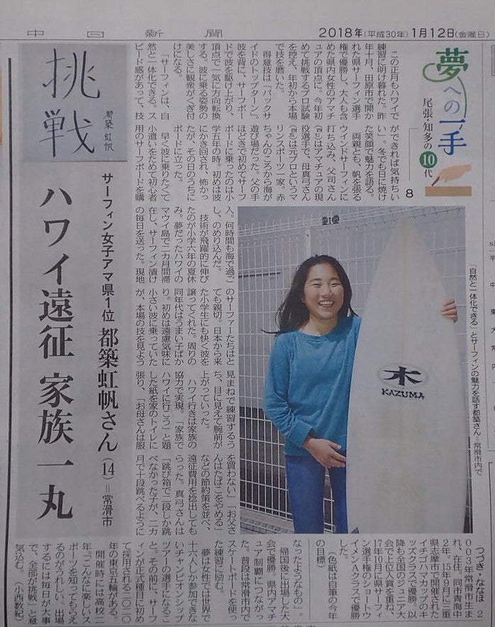 昨年、中学3年生でプロ公認資格を取得し、愛知県勢最年少プロサーファーに。
