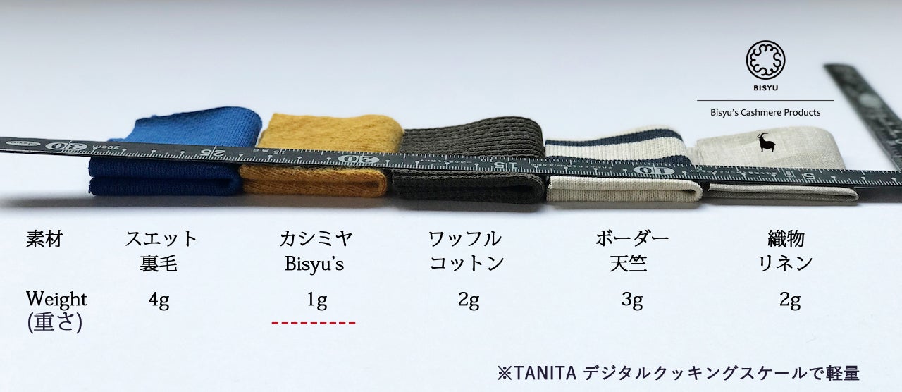 Bisyu's カシミヤ素材と他素材との比較検証を行いました。