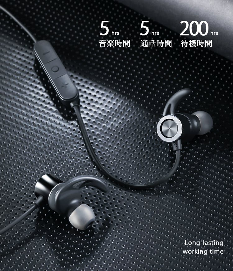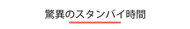 100mAlバッテリーを搭載しており、1回の満充電(2.5時間)で200時間スタンバイ可能です。音楽再生・音声通話などは約5時間使用できます。※使用方法や使用環境により異なる場合がございます。