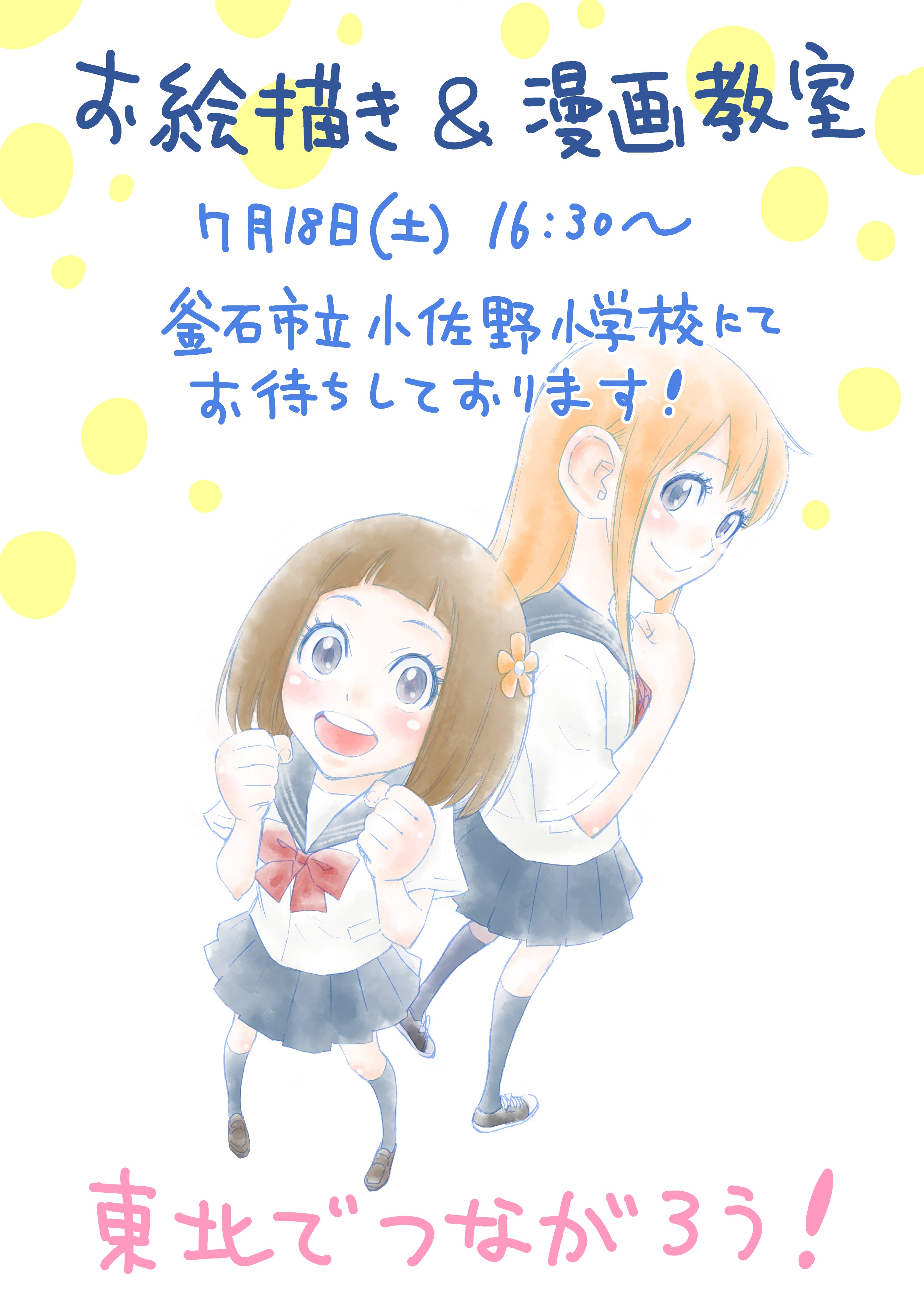 この度、漫画家仲間の河野慶先生と棚園正一先生の3人で8月17日(土)岩手県釜石市でマンガでつながる交流イベント『マンガフェスタ!』を開催させていただくこととなりました。