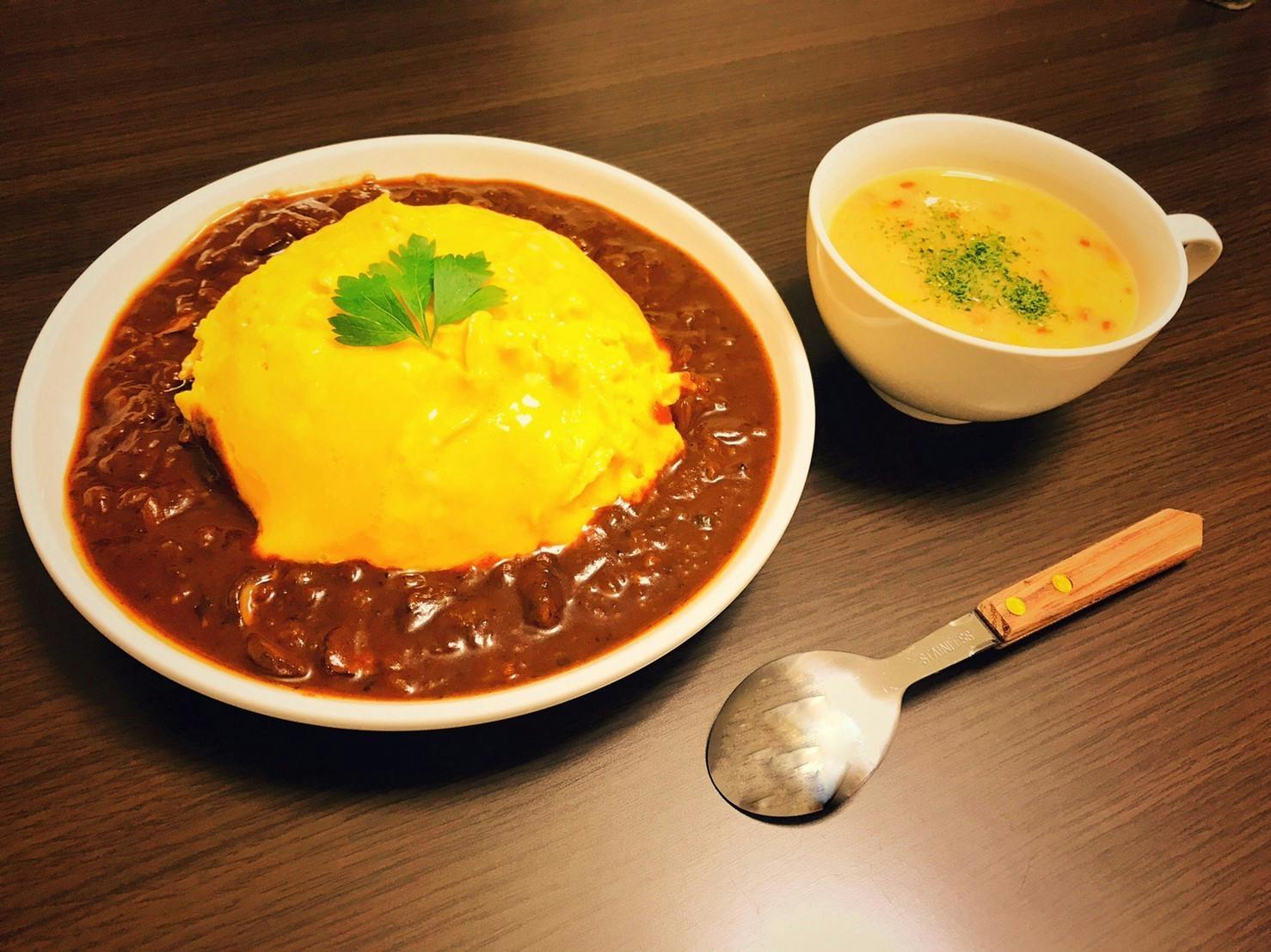 ・デミグラスオムライス&パプリカのポタージュ