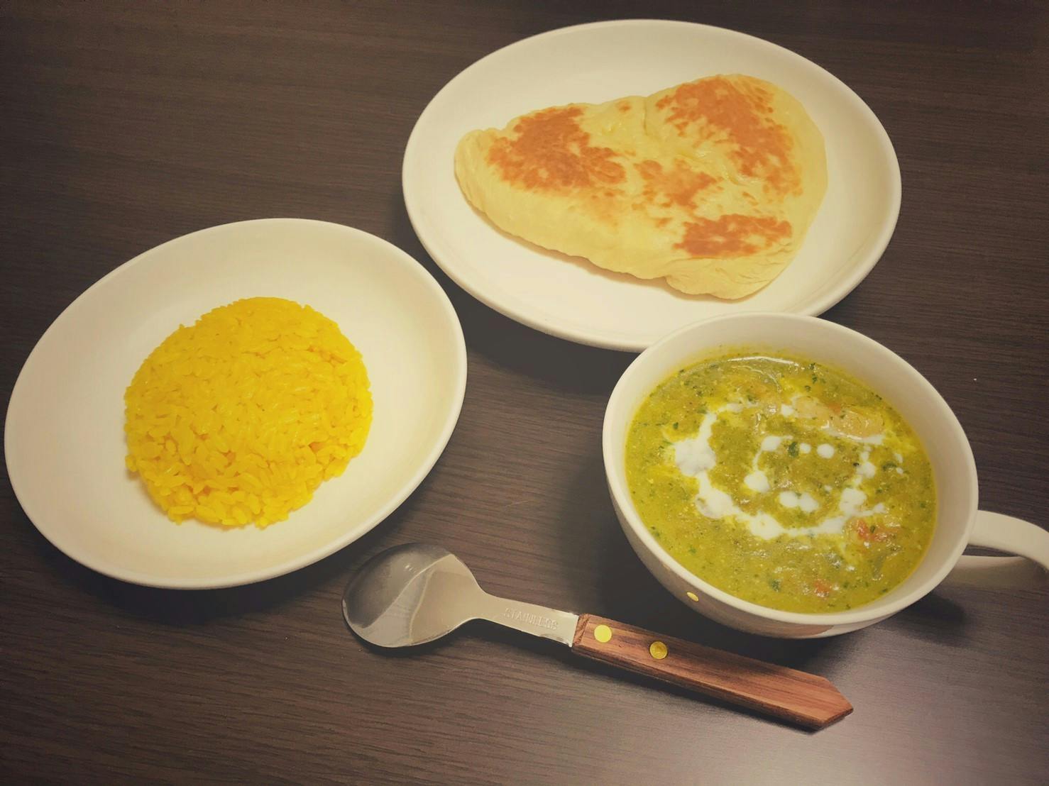 ・サグチキンカレー&ターメリックライス&ナン