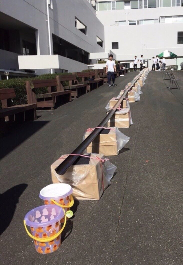 この流しそうめんという楽しさ溢れるイベントを通じて多くの人に笑顔になってもらいたい、多くの人と関わりたい。。。と思っていたそんな時、私の通っている大学のキャンパスには登校時に学生が苦しめられる「急な坂」があることを思い出しました。そうだ!急な傾斜を使ってそうめんを流して、この坂を学生が「苦しめられる坂」から「楽しい坂」にしようと考えました。その坂を使って何かをする、という試み自体がキャンパス史上初めてでした。そのために当初は大学の事務局から通行の安全上の理由で断られました。しかし「人を笑顔にしたい。」「流しそうめんという魅力溢れるイベントなら確実に人を楽しませることが出来る」というモチベーションのもと修正した企画書を10回以上も事務局に提出し、企画立案から5カ月が経ちやっと実行することができました。