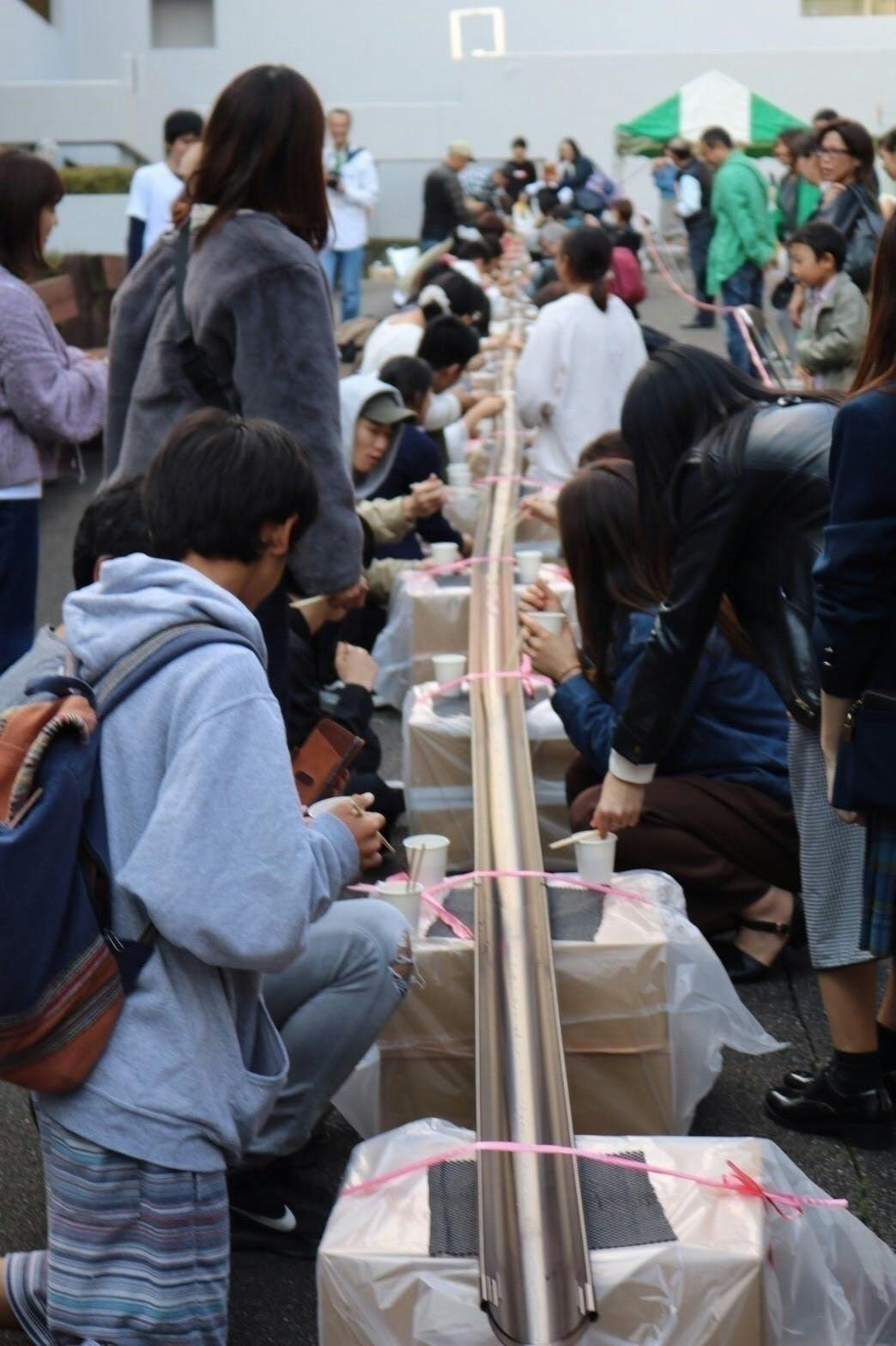 私の想像通り流しそうめんを実施してみると、参加してくれた皆さまが笑顔になることができました。そして、運営した私たちも同時に、参加された方の楽しんでいる顔、笑い声を見聞きすることで達成感から自然と笑顔になることができました。また流しそうめんには「人を笑顔にする」ことに加えて新たな力があることに気づくことができました。それは、初対面同士が、流しそうめんの装置を共同で作り、当日のイベントをみんなで体験したことでキャンパス内にコミュニティが形成されたということです。このみんなで同じ体験をしてワイワイと楽しめるということは、流しそうめんが持っている最大の力ということを認識しました。今でも流しそうめんで、できたコミュニティは継続しています。流しそうめんで、その後のキャンパスの雰囲気、コミュニティを少しだけ変えることができました。