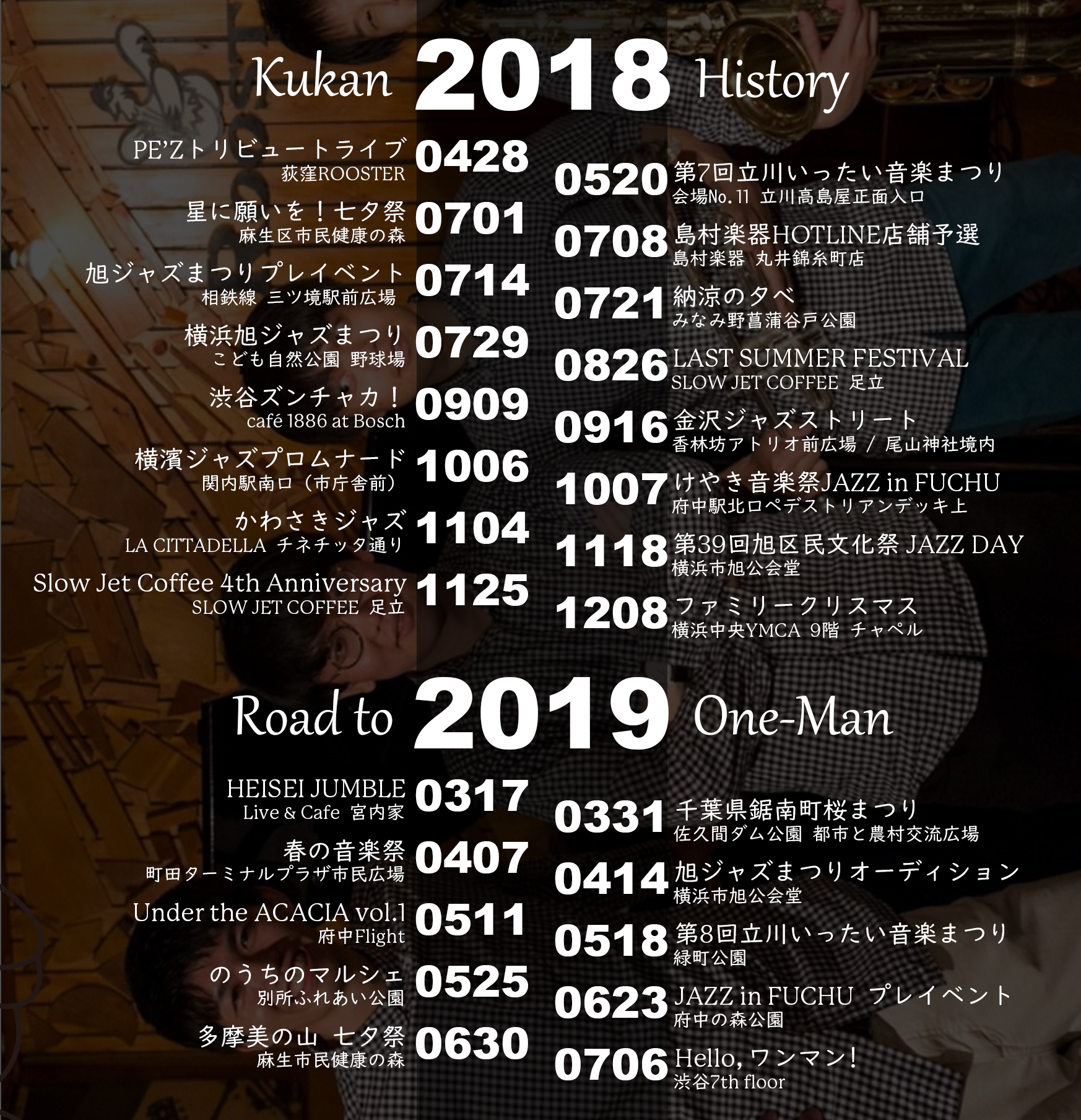 2017年6月、バンド初となる自主制作CD「空」を発売し、初回制作分50枚が2日間のライブでソールドアウト。2018年5月、1stアルバム「Hello, Kukan!」をリリース。楽曲制作やレコーディングに留まらず、オフィシャルサイト制作やグッズデザイン、動画制作までメンバー自身で行っています。