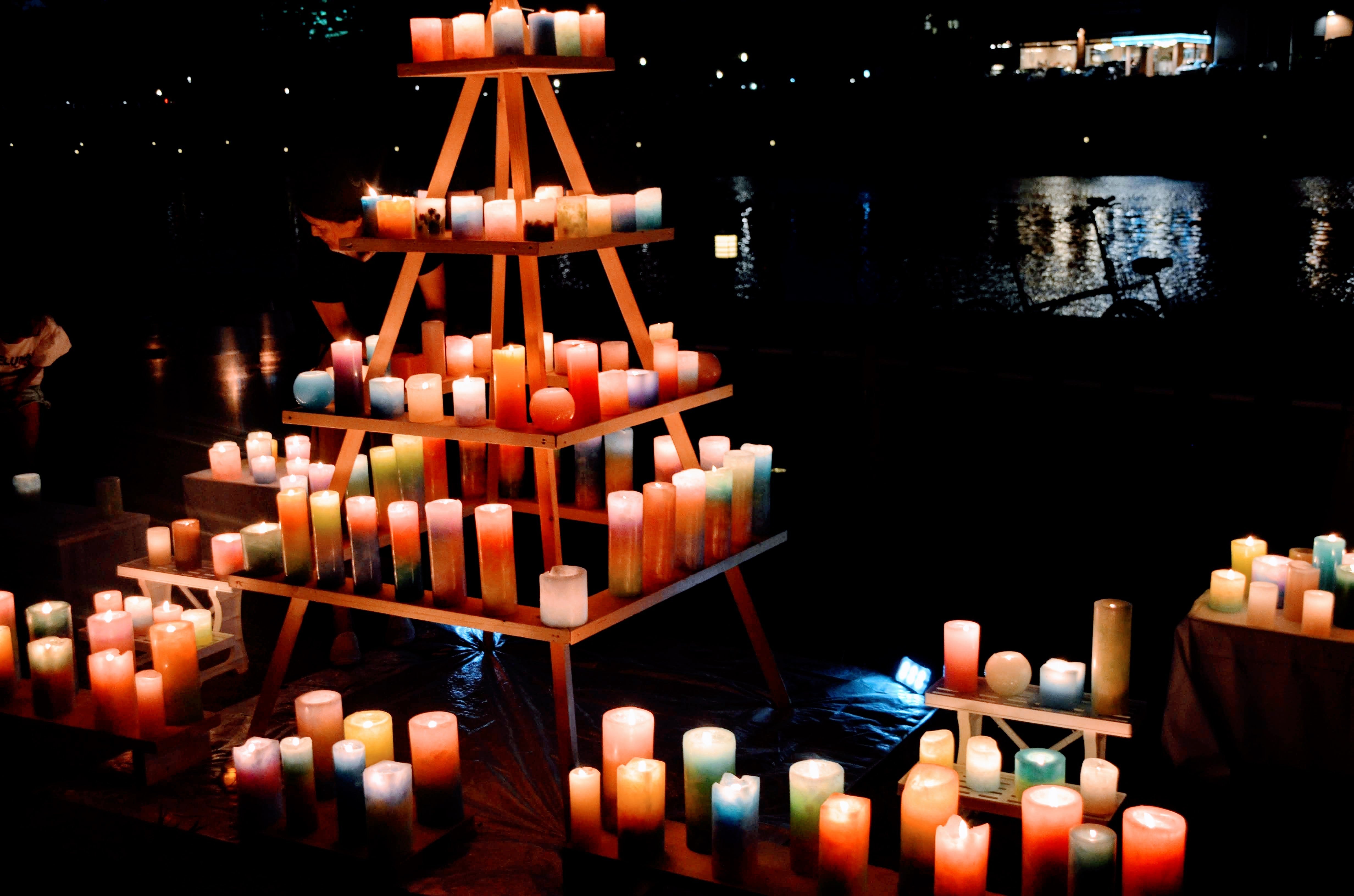 【夜の川辺をキャンドルで彩り】