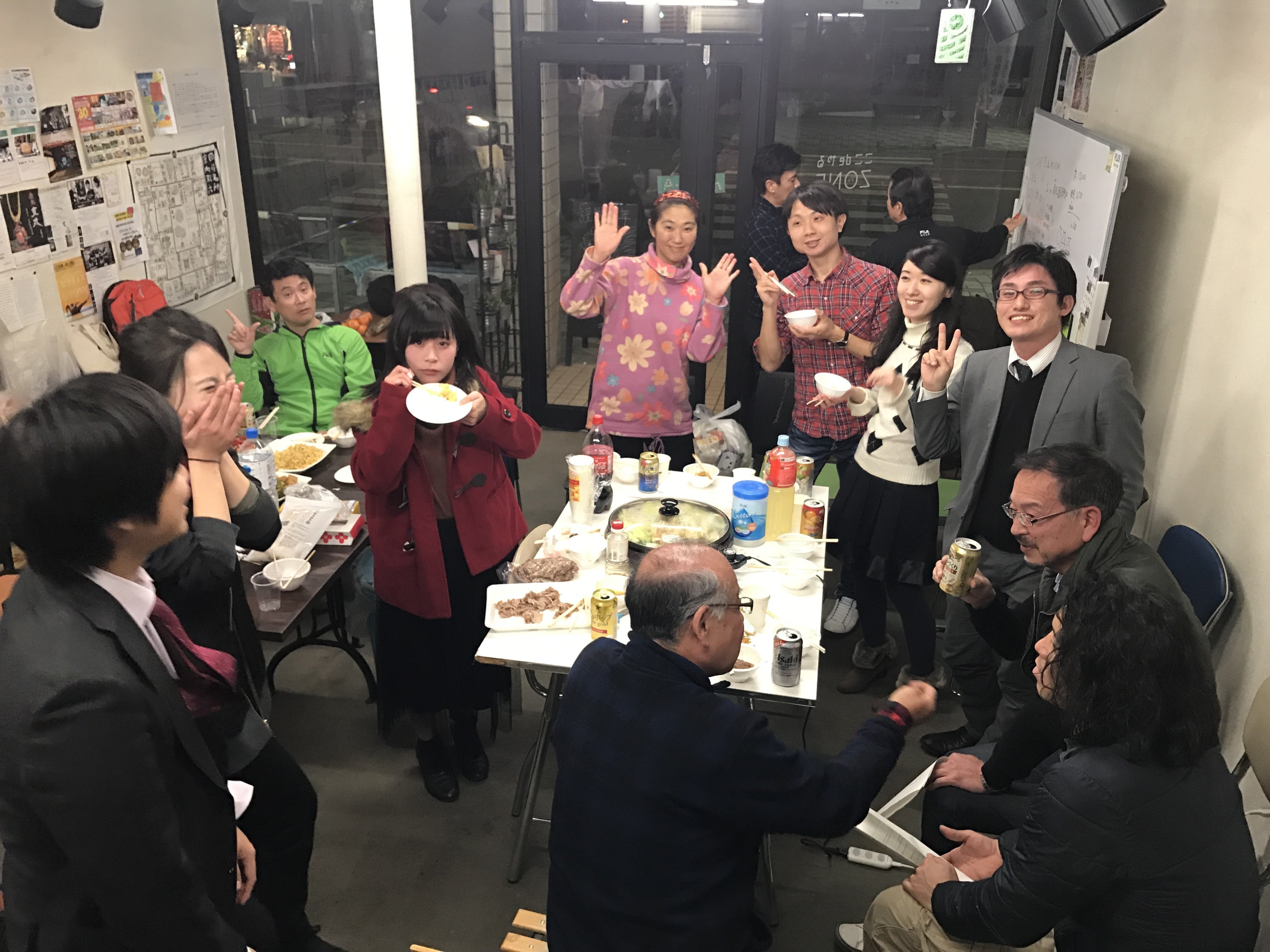 勇気を振り絞ってここやるのイベントに参加すると、大学生から商店主まで様々な方が、はじめましての人々同士、ご飯やお酒を一緒に楽しみながらたわいない話で盛り上がる、という大家族の晩御飯のような温かい空気感が広がっていました。