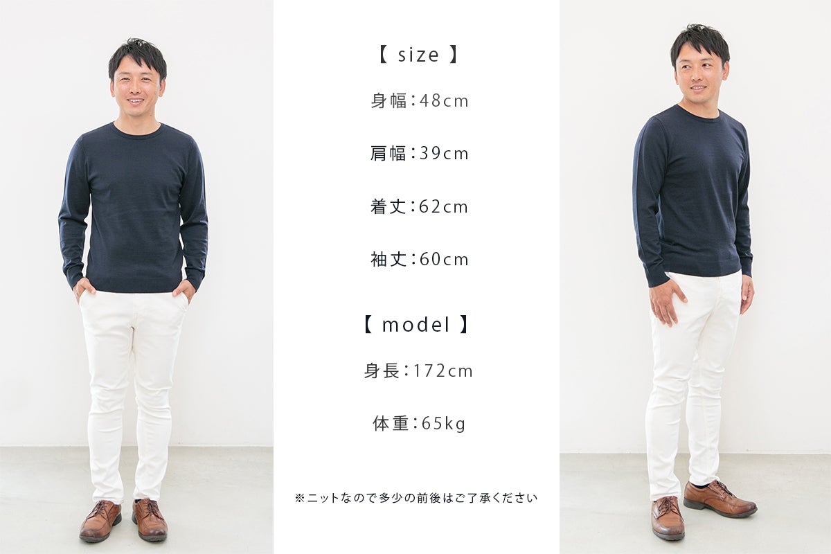 オーストラリア産の高級羊毛を原料とし、日本国内で紡績された繊細で上品な糸を使用。編み地となった時のキメ細やかな肌触りが特長で、素肌に着たくなるような気持ちのいいウール素材を選びました。