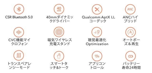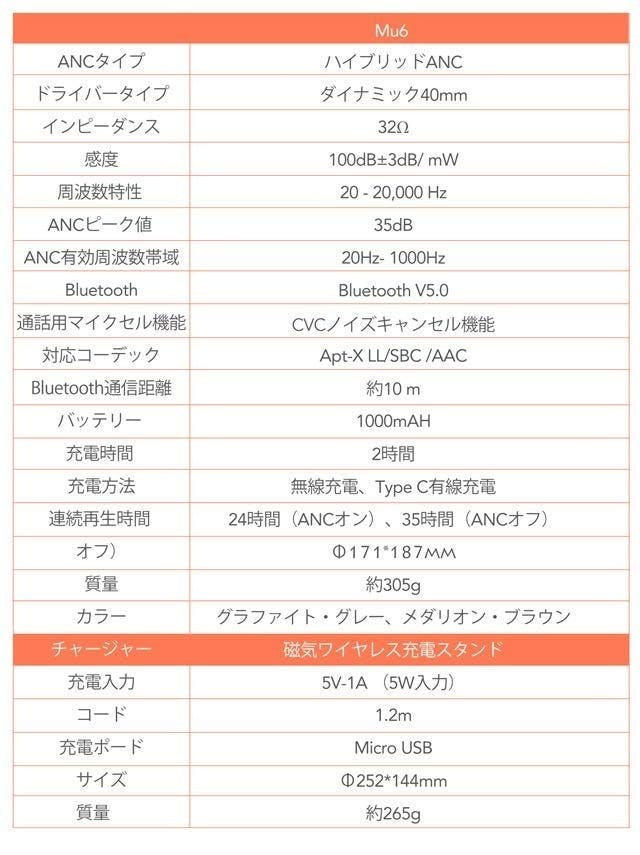 高性能なオーディオ用のチューニングされたANC 40mmの大口径ドライバーを採用のため、Mu6はバランスの取れた中音域とハイレベルのアグレッシブな低音域の再生を実現。そのため、よりリアルに音楽や映画の迫力感と臨場感を表現できます。
