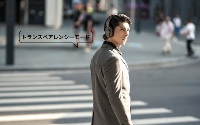 例えば混雑している交差点を渡ろうとする時、トランスペアレンシーモードに切り替えると、環境音をしっかりと取り込み、周囲に注意を払いながら安全を確保できます。