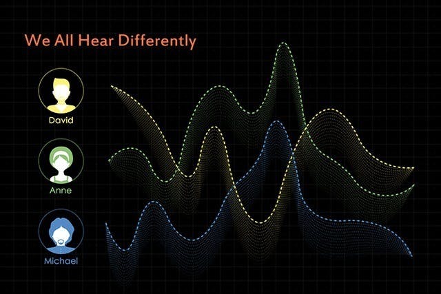 Mu6アプリでミニテストを行い、ユーザー個々人の唯一無二な聴覚感度を、いくつかの音とマッピングします。一人一人の聴力損失をテストで見つけ出して補うことによって、Mu6ゴールデンカーブと一致するように音を調整していきます。結果的に、あなただけの耳に合うようにカスタマイズされたサウンドを、Mu6がお届けします。