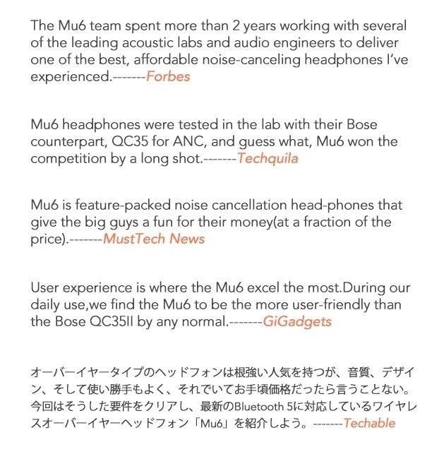 高性能&低価格を目指して、Mu6は2018年12月に完全Apt-X HD対応ハイブリッドANCヘッドホン市場に初めて登場しました。海外クラウドファンディングサイトINDIEGOGOでの支援額は既に183,078ドル(約2,000万円)を超え、支援者数が1580人を突破しました。