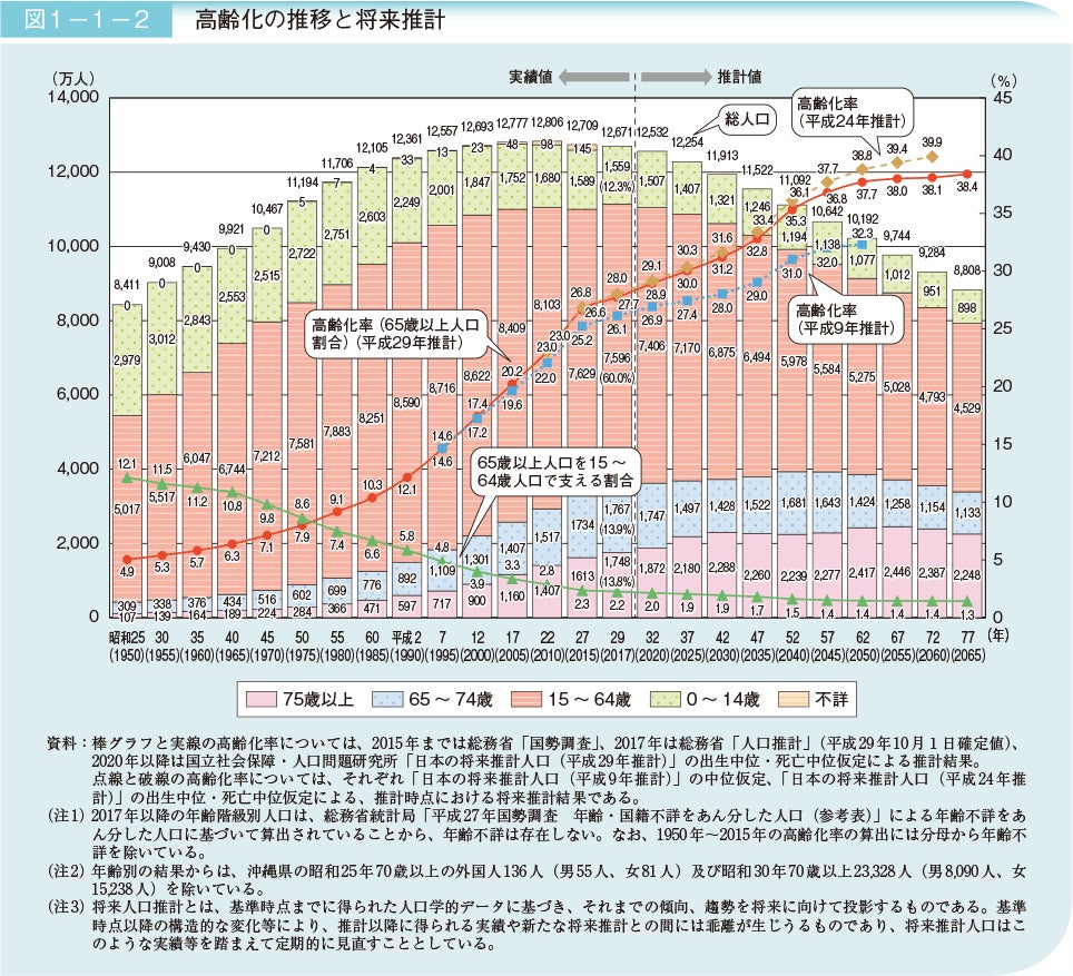 ▼これから総人口も減り、高齢者が益々増加致します。