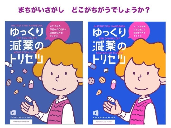 左側が再校、右側が初校です。もちろん色の調整はしているのですが、この冊子を作る意味で最も注目して欲しいところがこの絵の中にあります!みなさんじーっと見てみてね。