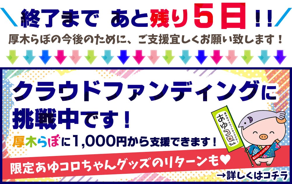 厚木の地域活性化のためにも、今後の厚木らぼの存続のためにも、「資金」という”力”をください。