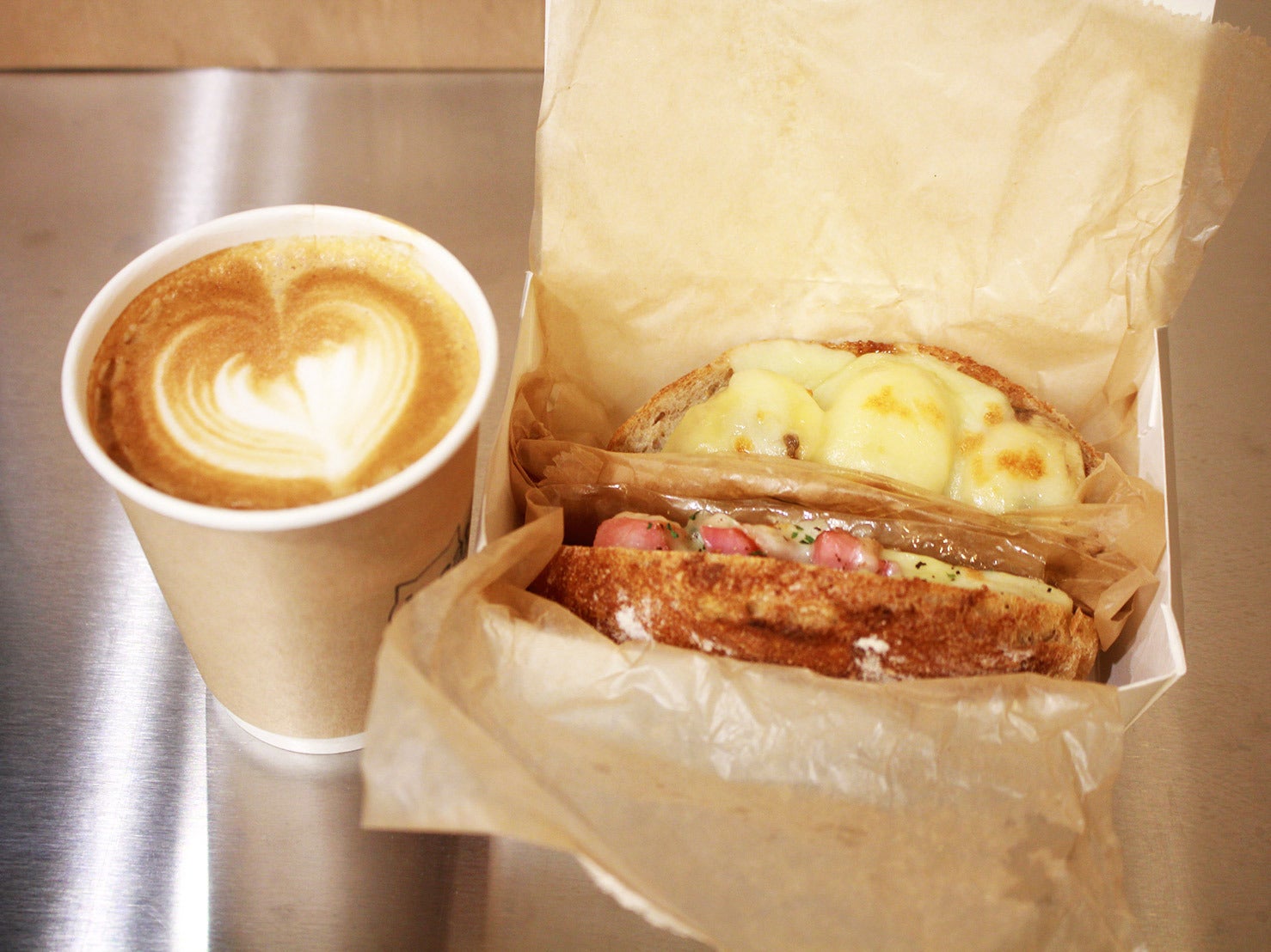 待望のコラボ!島田の「アンコール」さんで特別に焼いて頂いたパンを使用したチーズトースト2種(バナナハニー、ハム&ブラックペッパー)も大好評!どっちも食べたいという方にお勧め!ハーフ&ハーフが大人気です♪