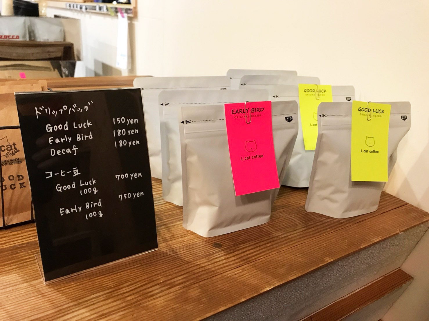 クラウドファンディングのリターンの一つになっているオリジナルブレンドのコーヒー豆2種(グッドラックとアーリーバード)も数量限定ですが、店頭でも販売しています!